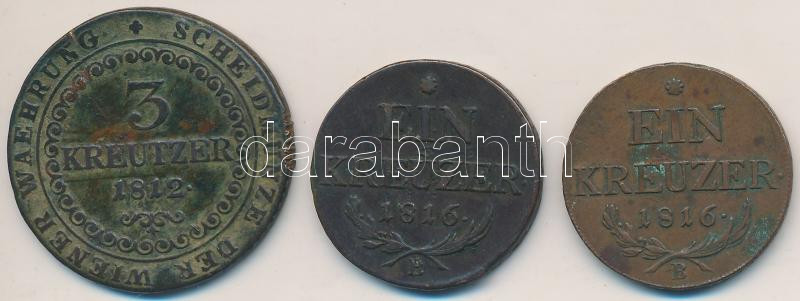 1812B 3kr Cu + 1816B 1kr Cu (2x) T:2-,3 https://www.darabanth.com/de/230-Fernauktion/230.0/Numismatik/Ungarische-Munzen~400020/1812B-3kr-Cu-plus-1816B-1kr-Cu-2x-T2-3~II1038243