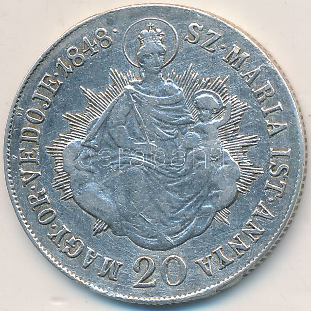 Adamo B5 https://www.darabanth.com/de/230-Fernauktion/230.0/Numismatik/Ungarische-Munzen~400020/1848KB-20Kr-Ag-V-Ferdinand-T2-2-ph-3Cbr3EAdamo-B5~II1030386