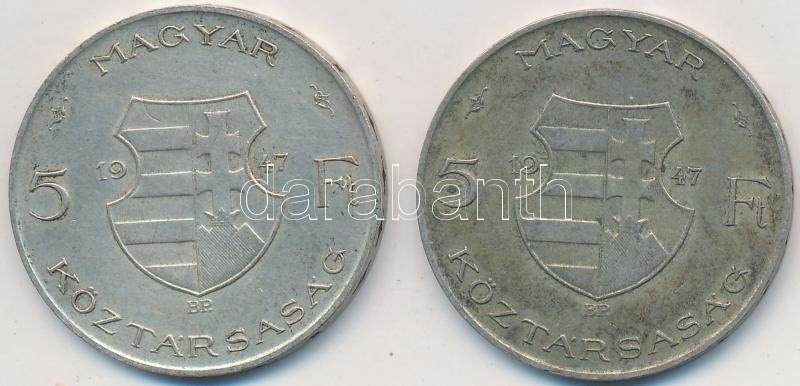 Beschreibung: 1947. 5Ft Ag "Kossuth" (2x) T:2-,3