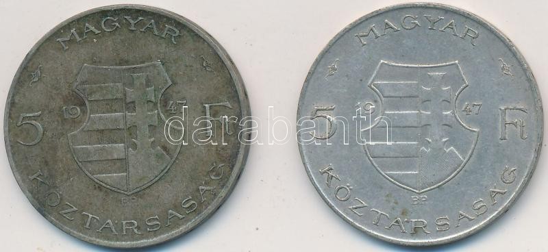 Beschreibung: 1947. 5Ft Ag "Kossuth" (2x) T:2-,3