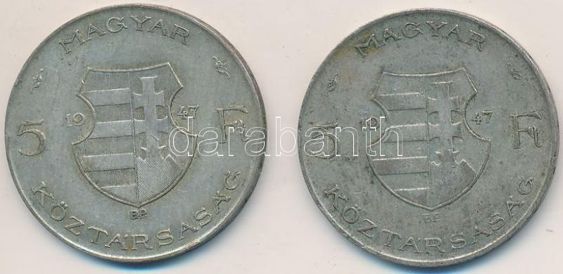 Beschreibung: 1947. 5Ft Ag "Kossuth" (2x) T:2-,3