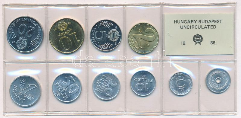 1986. 2f-20Ft 10db klf érmés forgalmi sor fóliatokban T:1 https://www.darabanth.com/de/230-Fernauktion/230.0/Numismatik/Ungarische-Munzen~400020/1986-2f-20Ft-10db-klf-ermes-forgalmi-sor-foliatokban-T1~II1033319