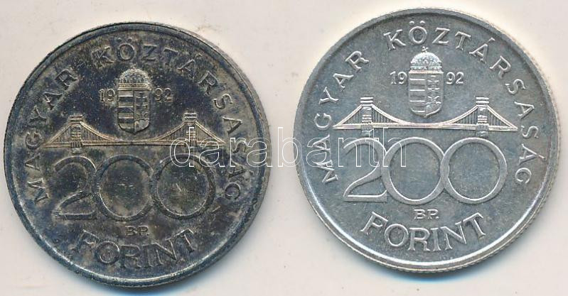 1992. 200Ft Ag "MNB" (2x) T:2,2- https://www.darabanth.com/de/230-Fernauktion/230.0/Numismatik/Ungarische-Munzen~400020/1992-200Ft-Ag-MNB-2x-T2-2-~II1036283