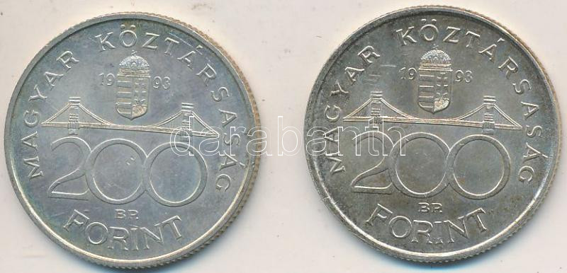 Beschreibung: 1993. 200Ft Ag "MNB" (2x) T:2,2-