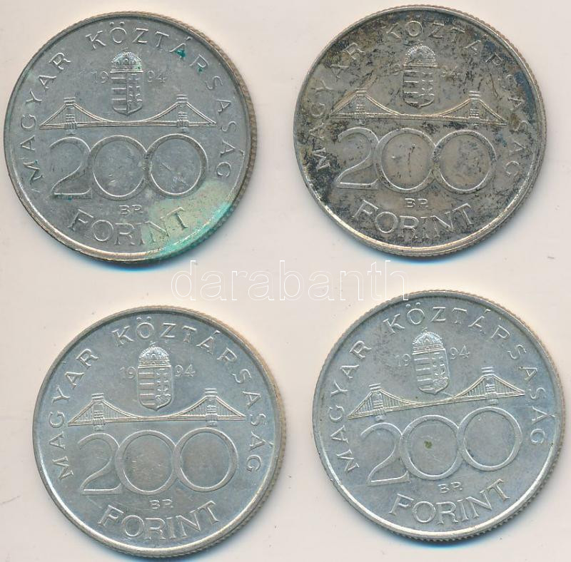 1994. 200Ft Ag "Deák" (4x) T:2,2- https://www.darabanth.com/de/230-Fernauktion/230.0/Numismatik/Ungarische-Munzen~400020/1994-200Ft-Ag-Deak-4x-T2-2-~II1036341