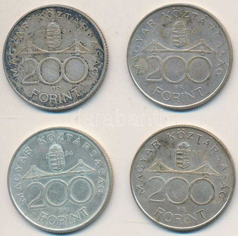 1994. 200Ft Ag "Deák" (4x) T:2,2- https://www.darabanth.com/de/230-Fernauktion/230.0/Numismatik/Ungarische-Munzen~400020/1994-200Ft-Ag-Deak-4x-T2-2-~II1036343
