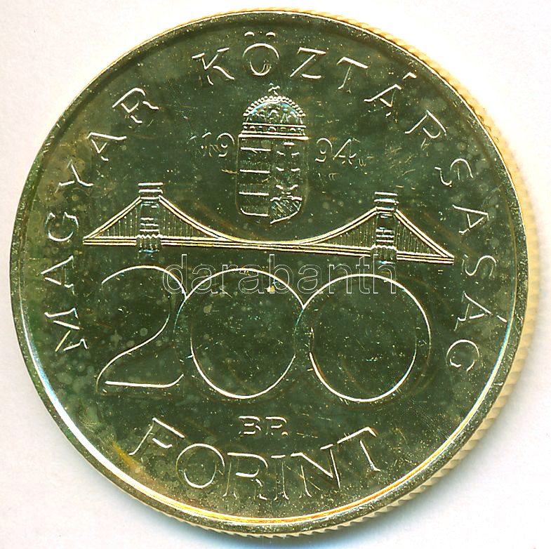 Beschreibung: 1994. 200Ft Ag "Deák" aranyozva T:2