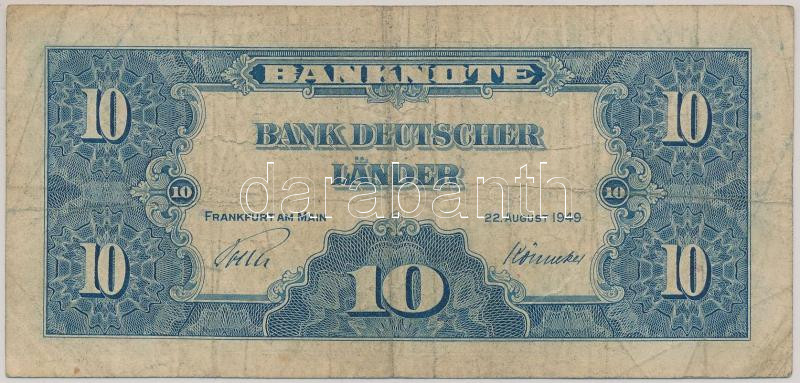 FRG 1949. 10 Mark C:F https://www.darabanth.com/de/230-Fernauktion/230.0/Numismatik/Weltweit-Banknoten~400012/NSZK-1949-10M-TIII-3Cbr3EFRG-1949-10-Mark-CF~II1031863