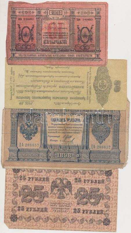 Beschreibung: Orosz Birodalom 1898. 1R + Szocialista Szövetségi Szovjet Köztársaság 1918. 25R (2x) + Ideiglenes Szibériai Igazgatás (Kolcsak admirális) 10R + 1920. 50R T:III,III-