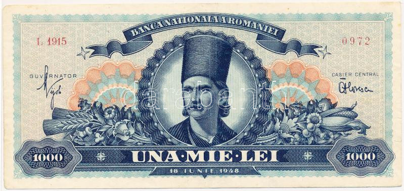 Romania 1948. 1000 Lei C:F https://www.darabanth.com/de/230-Fernauktion/230.0/Numismatik/Weltweit-Banknoten~400012/Romania-1948-1000L-TIII-3Cbr3ERomania-1948-1000-Lei-CF~II1029642