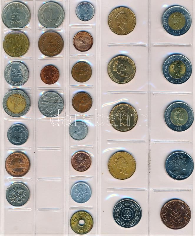 160db-os vegyes főleg külföldi fémpénz gyűjtemény érmetartó albumba rendezve, jobb darabokkal T:vegyes