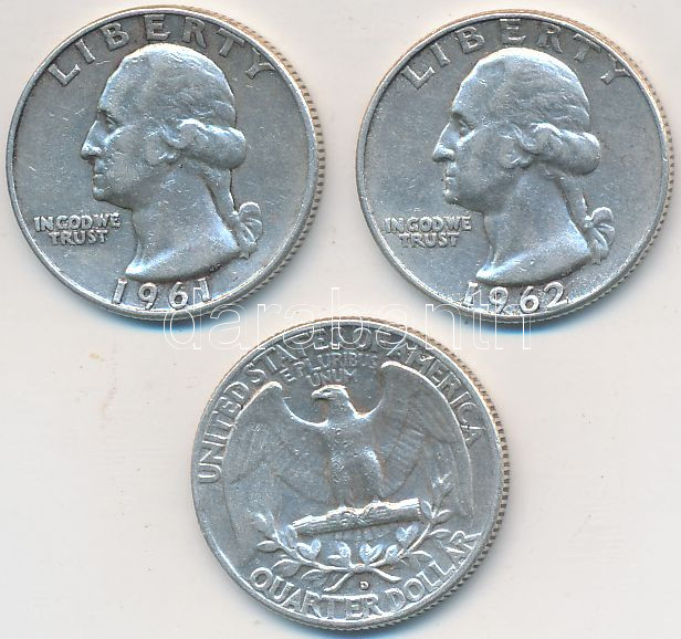 Amerikai Egyesült Államok 1961-1964D 1/4$ Ag "Washington" (3xklf) T:2-... https://www.darabanth.com/de/230-Fernauktion/230.0/Numismatik/Weltweit-Munzen~400013/Amerikai-Egyesult-Allamok-1961-1964D-14USD-Ag-Washington-3xklf-T2--3Cbr3EUSA-1961-1964D-14-Dol~II1029566