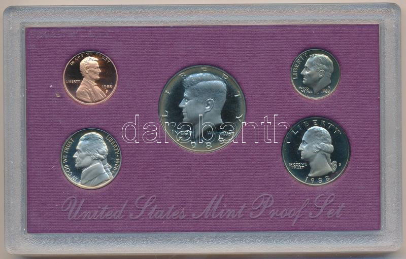 Amerikai Egyesült Államok 1988S 1c-1/2$ (5xklf) forgalmi sor eredeti tokban, tanúsítvánnyal T:PP