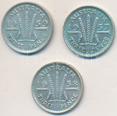 Australia 1957-... https://www.darabanth.com/de/230-Fernauktion/230.0/Numismatik/Weltweit-Munzen~400013/Ausztralia-1957-1959-3p-Ag-II-Erzsebet-3x-T2-2--3Cbr3EAustralia-1957-1959-3-Pence-Ag-Eliza~II1036562
