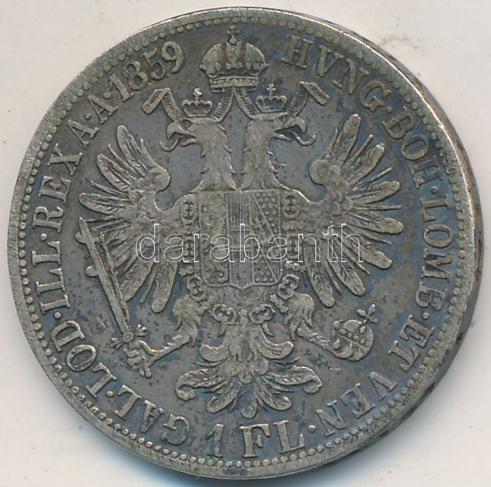 Austria 1859A 1 Flor... https://www.darabanth.com/de/230-Fernauktion/230.0/Numismatik/Weltweit-Munzen~400013/Ausztria-1859A-1Fl-Ag-Ferenc-Jozsef-T2-patina-3Cbr3EAustria-1859A-1-Florin-Ag-Franz-Joseph-CV~II1036439