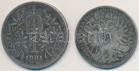 Austria 18... https://www.darabanth.com/de/230-Fernauktion/230.0/Numismatik/Weltweit-Munzen~400013/Ausztria-1868-20kr-Ag-plus-1901-1K-Ag-Ferenc-Jozsef-T2-3-3Cbr3EAustria-1868-20-Kreuzer-Ag-plus-1901~II1036201