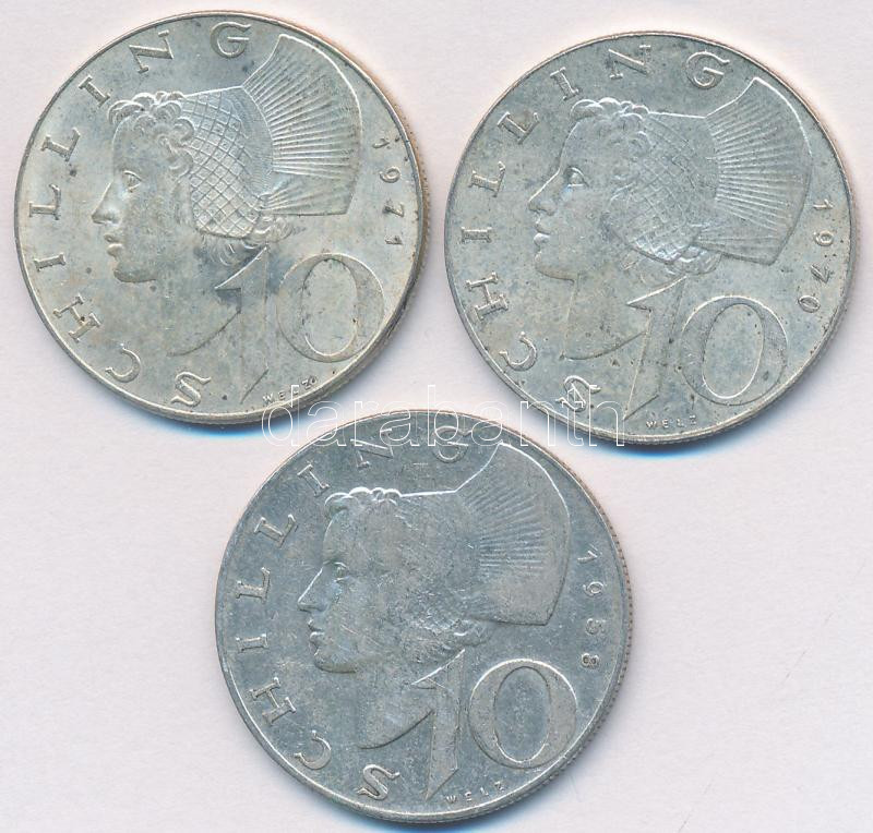Austria 1958-1971. 10 Schilli... https://www.darabanth.com/de/230-Fernauktion/230.0/Numismatik/Weltweit-Munzen~400013/Ausztria-1958-1971-10Sch-Ag-3x-T2-2--3Cbr3EAustria-1958-1971-10-Schilling-Ag-3x-CXF-VF~II1035528
