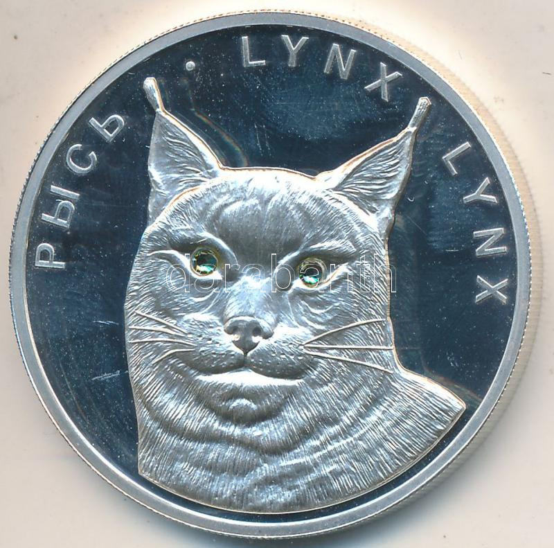 Fehéroroszország 2008. 20R Ag "Hiúz" Swarowski kövekkel díszítve, tanúsítvánnyal (31,1g/0.999/38.61mm) T:PP apró felületi karcok