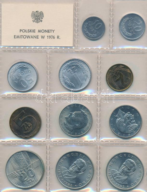 Polan... https://www.darabanth.com/de/230-Fernauktion/230.0/Numismatik/Weltweit-Munzen~400013/Lengyelorszag-1976-10gr-20Zl-11xklf-forgalmi-sor-szettben-T1-3Cbr3EPoland-1976-10-Groszy--20-Z~II1031594