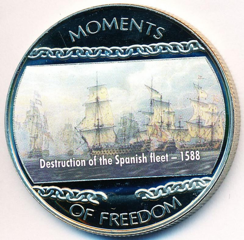 Liberia 2004. 10 Dollars "Moments of Freedom-Destruction of the Spanish fleet 1588" multicolor C:PP