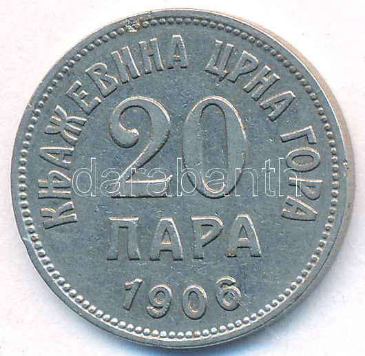 Krause KM... https://www.darabanth.com/de/230-Fernauktion/230.0/Numismatik/Weltweit-Munzen~400013/Montenegro-1906-20p-Ni-T2-3Cbr3EMontenegro-1906-20-Para-Ni-CXF-3Cbr3EKrause-KM234~II1033278