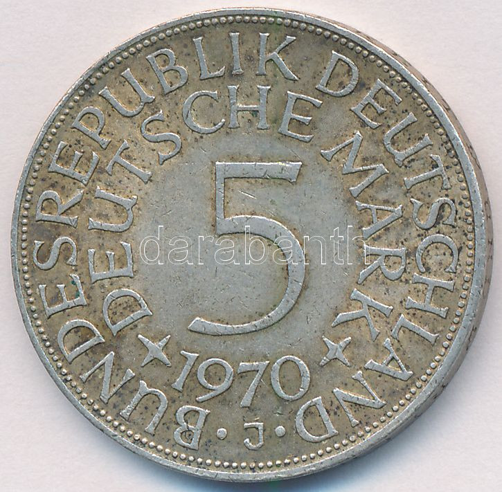 FRG 1970J 5 Mark Ag C:XF,VF https://www.darabanth.com/de/230-Fernauktion/230.0/Numismatik/Weltweit-Munzen~400013/NSZK-1970J-5M-Ag-T2-2--3Cbr3EFRG-1970J-5-Mark-Ag-CXF-VF~II1035588