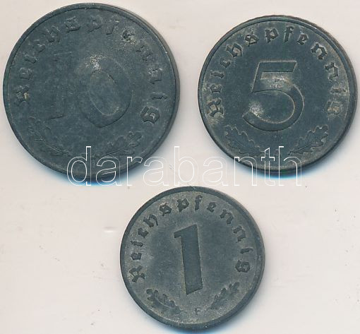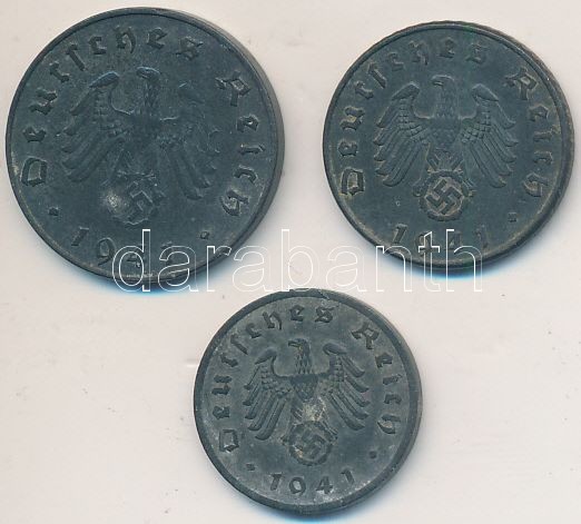 Német 3. Birodalom 1941F 1pf Zn + 1941A 5pf Zn + 1941J 10pf Zn T:2,2-... https://www.darabanth.com/de/230-Fernauktion/230.0/Numismatik/Weltweit-Munzen~400013/Nemet-3-Birodalom-1941F-1pf-Zn-plus-1941A-5pf-Zn-plus-1941J-10pf-Zn-T2-2--3Cbr3EGerman-Third-Reich-1941~II1036540