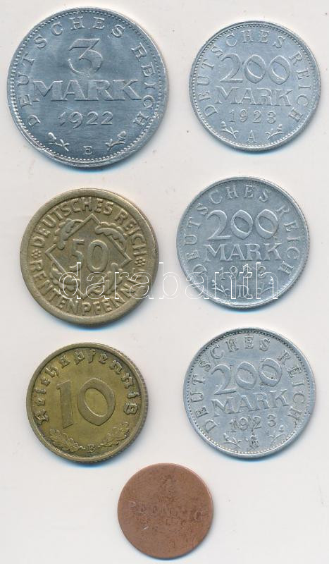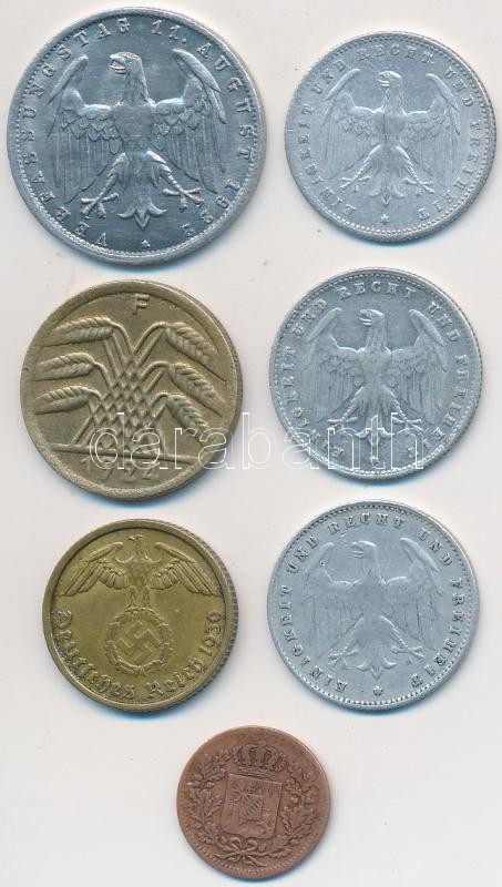 Német Államok / Bajorország 1842. 1pf Cu + Németország / Weimari Köztársaság 1922-1924. 50pf-200M (5x) + Német 3. Birodalom 1939B 10pf Al-Br T:vegyes
