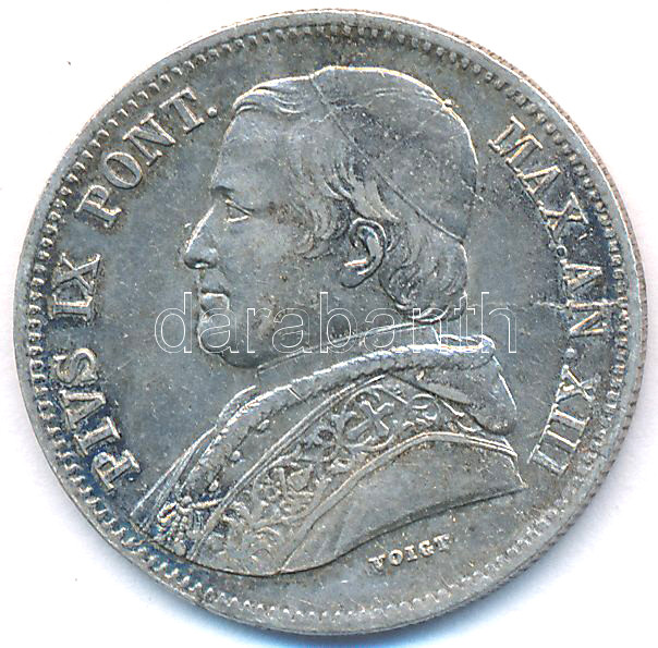 Italian Sta... https://www.darabanth.com/de/230-Fernauktion/230.0/Numismatik/Weltweit-Munzen~400013/Olasz-Allamok-Papai-Allam-1859R-20B-Ag-IX-Pius-T2-2--3Cbr3EItalian-States-Papal-State-1859~II1035587