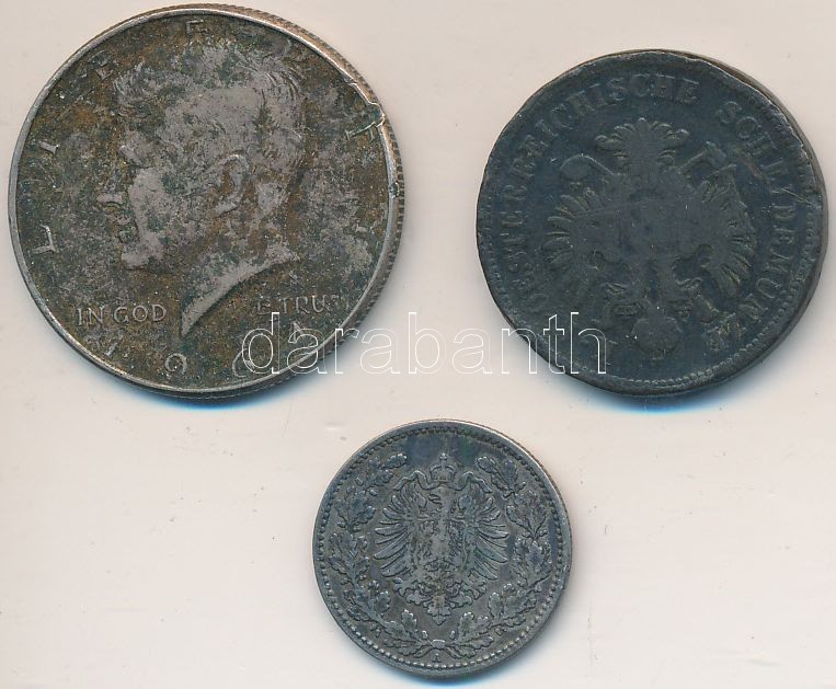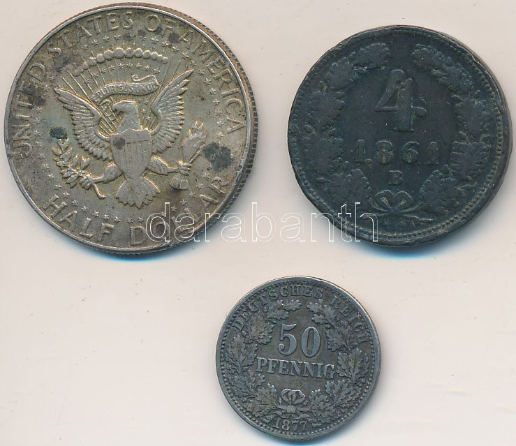 Vegyes: 1861B 4kr Cu + Német Birodalom 1877A 50pf Ag + Amerikai Egyesült Államok 1964. 1/2$ Ag "Kennedy" T:2-,3 patina