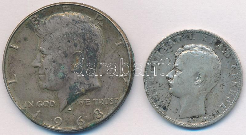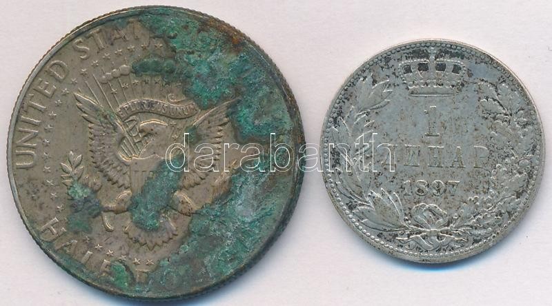 Vegyes: Szerbia 1897. 1D Ag "I. Sándor" + Amerikai Egyesült Államok 1968D 1$ Ag "Kennedy" T:2-,3 patina