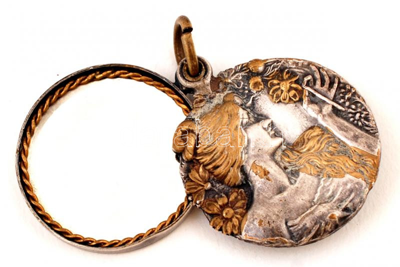 Beschreibung: cca 1910 Szecessziós medál, belül tükörrel / Art nouveau medal with mirror inside: 5 cm