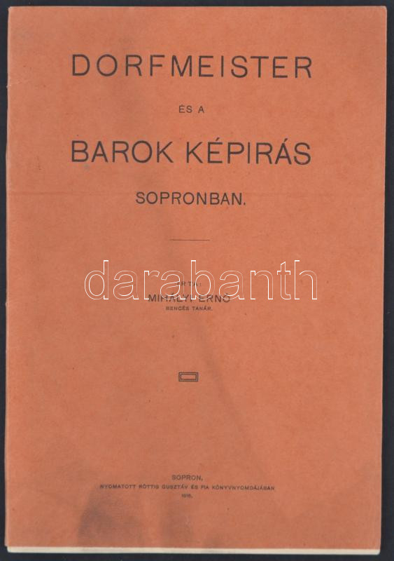 Mihályi Ernő: Dorfmeister és a barokk képírás Sopronban. Sopron, 1916,... https://www.darabanth.com/de/231-Fernauktion/231.0/Andere-Sammelgebiete/Bucher-Architektur-Kunst~600033/Mihalyi-Erno-Dorfmeister-es-a-barokk-kepiras-Sopronban-Sopron-1916-Rottig-Gusztav-es-Fi~II1045956