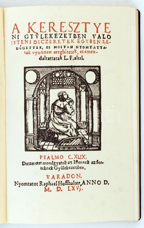 Bibliotheca Hungarica Antiqua: Keresztyéni gyülekezetben való isteni dícséretek. Várad 1566. Facsimile kiadás. Egészbőr kötésben, kísérő tanulmánnyal. Szép állapotban.