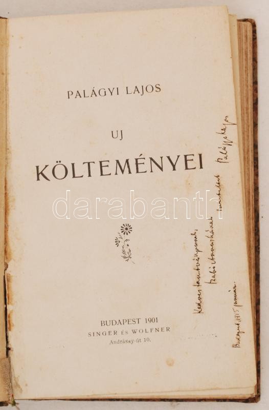 Palágyi Lajos: Új költeményei. Bp., 1901, Singer és Wolfner. A szerző ... https://www.darabanth.com/de/231-Fernauktion/231.0/Andere-Sammelgebiete/Bucher-Sonstige-Raritaten~600041/Palagyi-Lajos-Uj-koltemenyei-Bp-1901-Singer-es-Wolfner-A-szerzo-szemelyre-szolo-dedik~II1015021