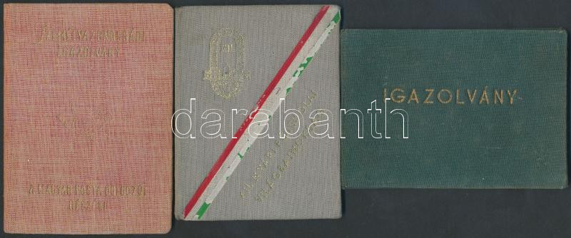 1954 Vegyes okmány tétel: 1954 XII. nyári főiskolai világbajnokság arcképes igazolványa, személyazonossági a Magyar Posta dolgozói részére, Hatvani cukorgyár dolgozói ig.
