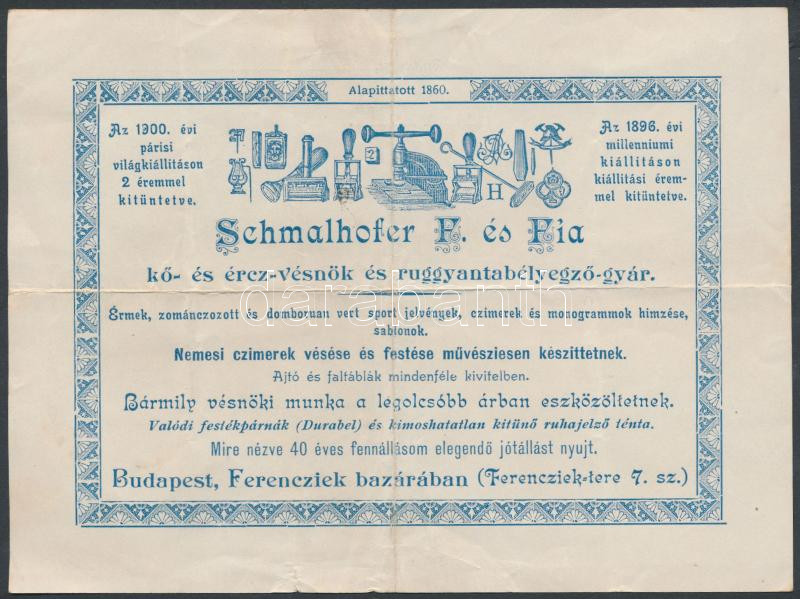 cca 1905-1910 Bp. Ferenciek tere, Schmalhofer f. és Fia kő- és ércvésn... https://www.darabanth.com/de/231-Fernauktion/231.0/Andere-Sammelgebiete/Dokument~600015/cca-1905-1910-Bp-Ferenciek-tere-Schmalhofer-f-es-Fia-ko-es-ercvesnok-es-ruggyantbelyegzC5~II1042582