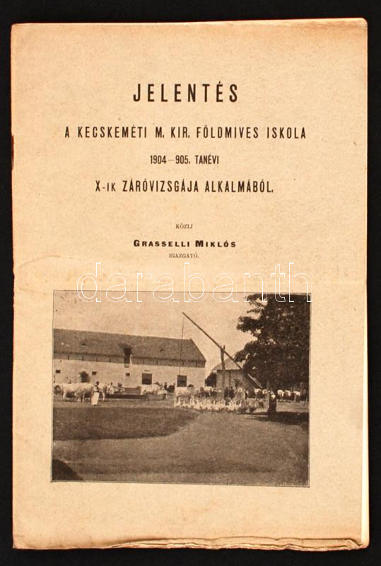 1905 Jelentés a Kecskeméti M. Kir. Földmíves Iskola 1904-1905.tanévi X-ik záróvizsgája alkalmából, közli Grasselli Miklós, benne az alapismeretek összefoglalójával, 21p