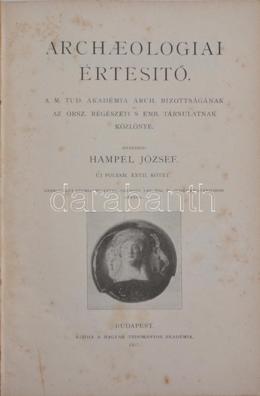 1907 Archeologiai Értesítő - A M. Tud. Akadémia arch, bizottságának, az Orsz. régészeti s Emb társulat közlönye. Szerk. Hampel József. Uj folyam XXVII. Komplett évfolyam.