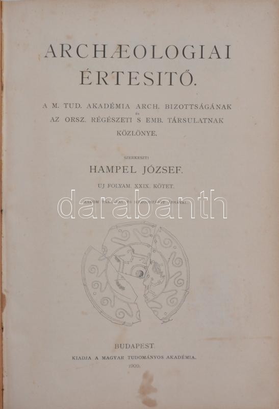 1909 Archeologiai Értesítő - A M. Tud. Akadémia arch, bizottságának, az Orsz. régészeti s Emb társulat közlönye. Szerk. Hampel József. Uj folyam XXIX. Komplett évfolyam.