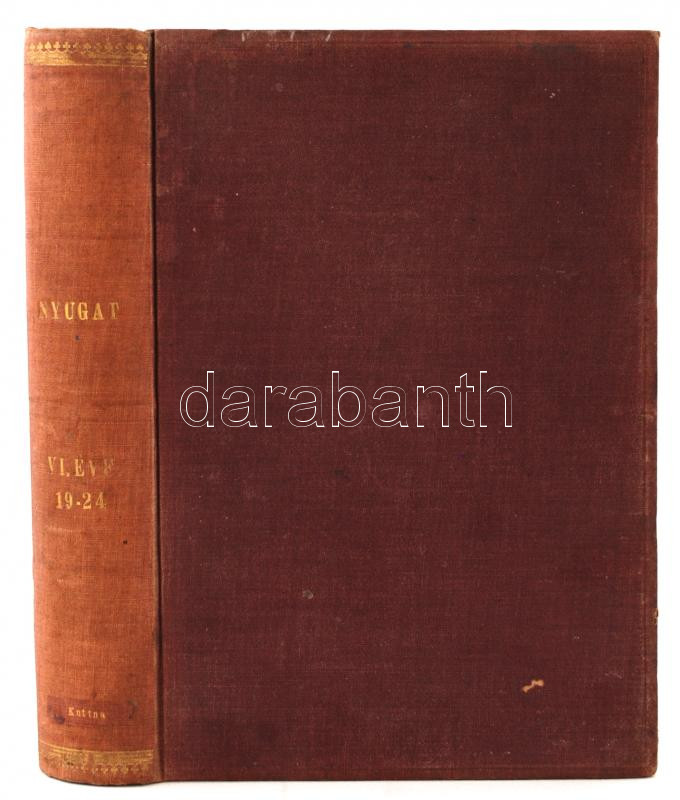 1913 A Nyugat című folyóirat VI. évfolyamának 19-24. száma egybe kötve... https://www.darabanth.com/de/231-Fernauktion/231.0/Andere-Sammelgebiete/Drucksachen~600027/1913-A-Nyugat-cimu-folyoirat-VI-evfolyamanak-19-24-szama-egybe-kotve-konyv-formatumban-e~II1047898