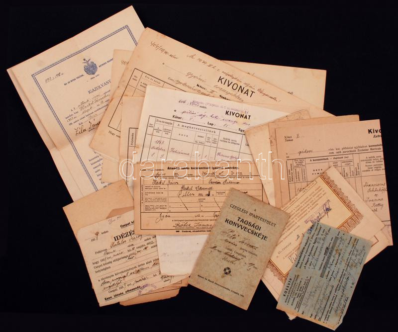 1917-1974 Vegyes okmány tétel: anyakönyvi kivonat, református igazolvá... https://www.darabanth.com/de/231-Fernauktion/231.0/Andere-Sammelgebiete/Drucksachen~600027/1917-1974-Vegyes-okmany-tetel-anyakonyvi-kivonat-reformatus-igazolvany-cegledi-ipartestule~II1043994