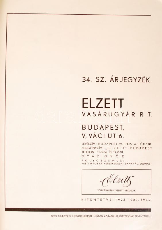 1934 Elzett vasárugyár képes zár és lakat katalógusa / Lock catalogue ... https://www.darabanth.com/de/231-Fernauktion/231.0/Andere-Sammelgebiete/Drucksachen~600027/1934-Elzett-vasarugyar-kepes-zar-es-lakat-katalogusa-Lock-catalogue-28plus16p~II933848