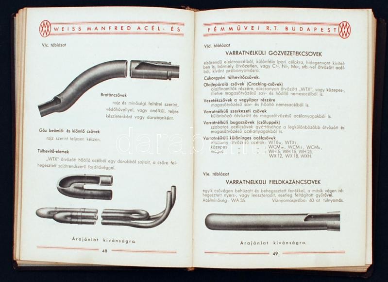 1939 Weiss Manfréd Acél- és Fémművei Részvénytársaság acélcső gyártmán... https://www.darabanth.com/de/231-Fernauktion/231.0/Andere-Sammelgebiete/Drucksachen~600027/1939-Weiss-Manfred-Acel-es-Femmuvei-Reszvenytarsasag-acelcso-gyartmanyainak-arjegyze~II1039762