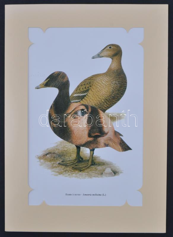 Eider Á Duvet: Somateria mollissima (L.), színes reprodukció paszpartu... https://www.darabanth.com/de/231-Fernauktion/231.0/Andere-Sammelgebiete/Drucksachen~600027/Eider-A-Duvet-Somateria-mollissima-L-szines-reprodukcio-paszpartuban-23x16cm~II1041366