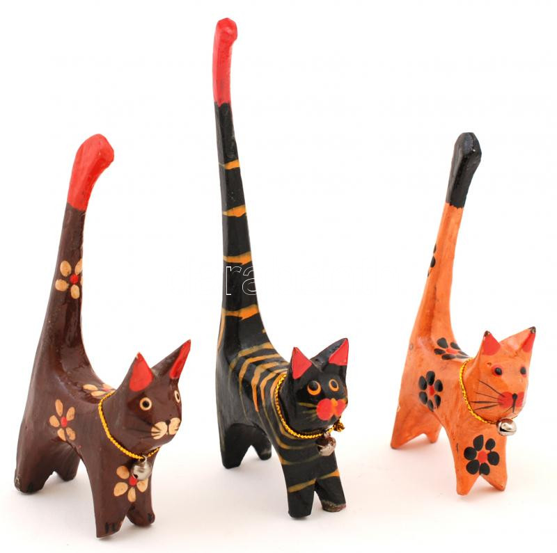 Beschreibung: 3 db fából készült, macskát formázó festett gyűrűtartó, különböző méretben