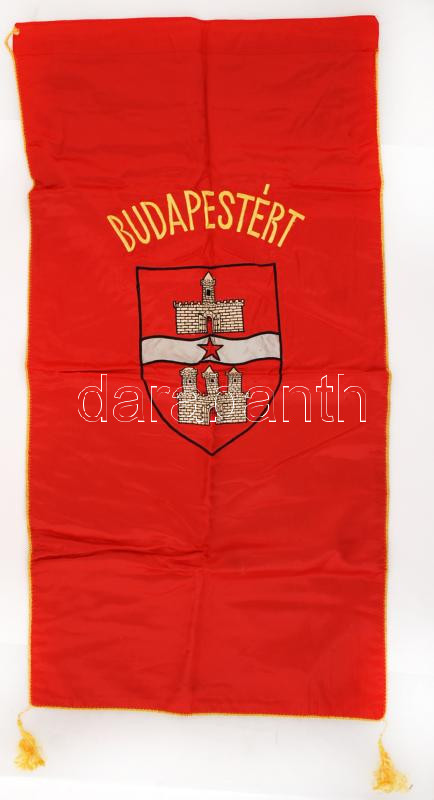 "Budapestért" feliratú régi zászló, kis sérüléssel, 94,5×48,5 cm https://www.darabanth.com/de/231-Fernauktion/231.0/Andere-Sammelgebiete/Flohmarkt~600010/Budapestert-feliratu-regi-zaszlo-kis-serulessel-94-5C39748-5-cm~II1044342