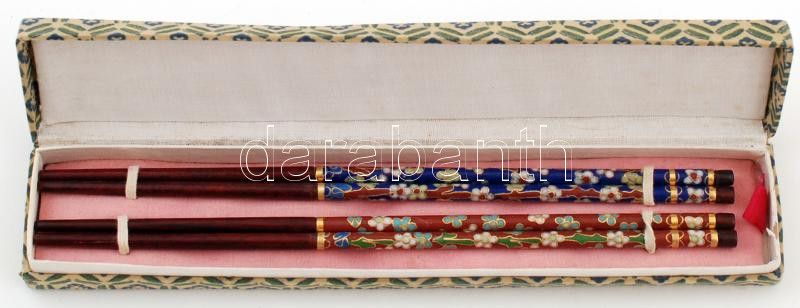 Beschreibung: Kínai virágokkal díszített evőpálcikák, 4 db, dobozban, h: 23 cm