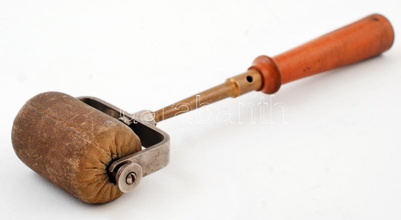 Kisméretű, fa nyelű, fémvázas nyomdászhenger, h: 24 cm https://www.darabanth.com/de/231-Fernauktion/231.0/Andere-Sammelgebiete/Flohmarkt~600010/Kismeretu-fa-nyelu-femvazas-nyomdaszhenger-h-24-cm~II1043141