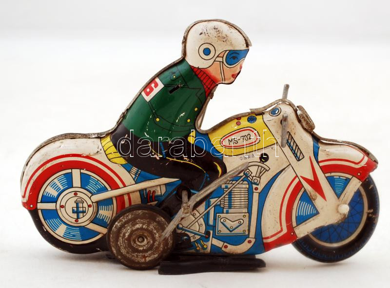 Lemezből készült kínai gyártmányú játék motoros, kopásokkal https://www.darabanth.com/de/231-Fernauktion/231.0/Andere-Sammelgebiete/Flohmarkt~600010/Lemezbol-keszult-kinai-gyartmanyu-jatek-motoros-kopasokkal~II1021799